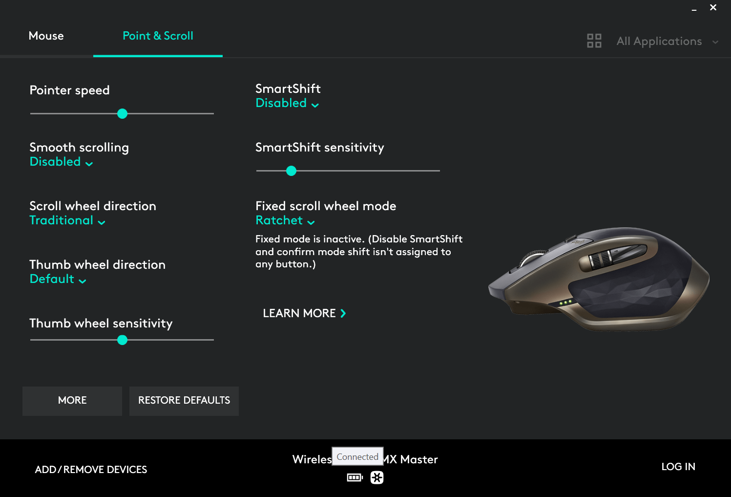 Пара слов о софте. Options позволяет переопределить пять клавиш (без учёта основных, хотя их тоже можно) плюс боковую промотку, включая управление по жестам (кстати, очень удобно) - хоть на всю операционку, хоть на отдельные приложения. Работает безупречно и на macOS, на Windows. К сожалению, версии Options для Andorid нет 😄, но и к телефону мышь превосходно цеплялась и работала.