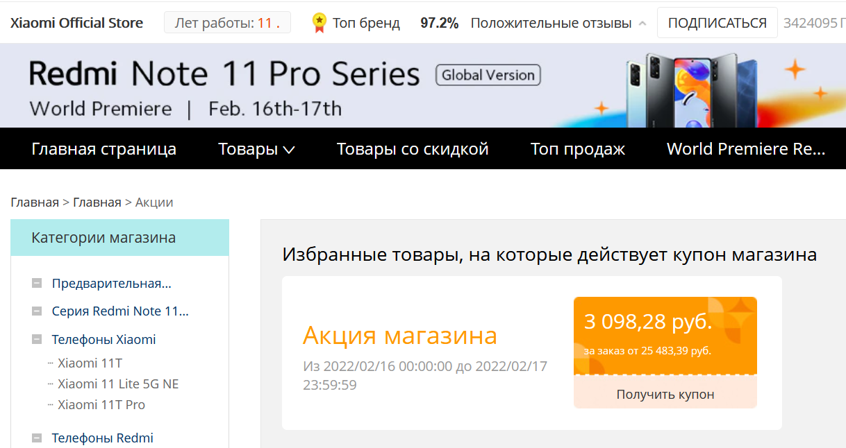 Завтра, 16 февраля в 11:00 по Москве стартуют продажи самых мощных и самых ожидаемых смартфонов 11-й серии Redmi Note