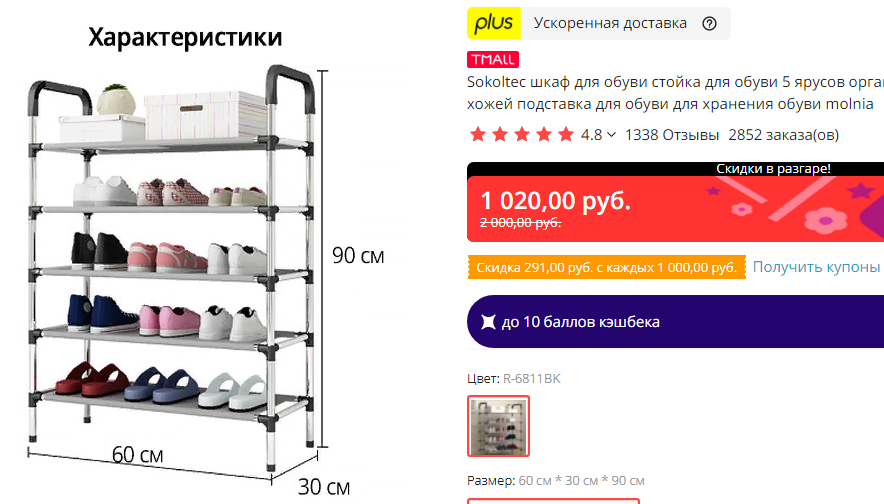 Только для России: СТОЙКА ДЛЯ ОБУВИ всего за 629 руб. (купон от продавца + пока действующий промокод).
