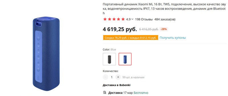 Довольно мощная беспроводная Bluetooth-колонка Xiaomi.