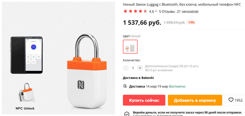 Умный навесной замок, который открывается или через приложение, или смартфоном с NFC.