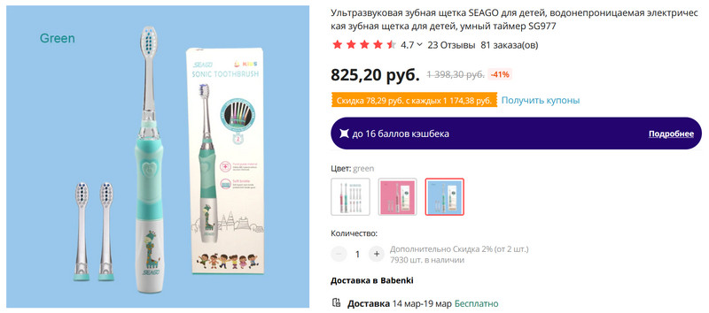 Недорогие вибрационные электрощетки для детей - разных цветов, с таймером очистки и вибрацией, подсказывающей смену зоны. Есть несколько режимов работы. В комплекте три сменные насадки.