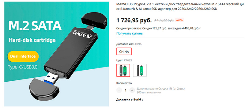 Универсальный кейс под SSD M.2 всех форматов. Покупаете любой SSD M.2 нужной емкости нужного производителя, вставляете в этот кейс, после чего получаете сверхбыстрый накопитель для подключения к ноутбуку, планшету, медиаплееру, смартфону с OTG.