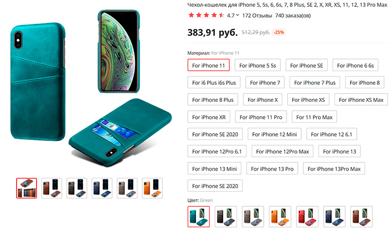 Чехол-кошелек для различных моделей айфонов. В соответствующее отделение на задней части чехла помещается банковская карта с чипом, и можно будет платить "телефоном", просто прикладывая айфон к платежному терминалу.