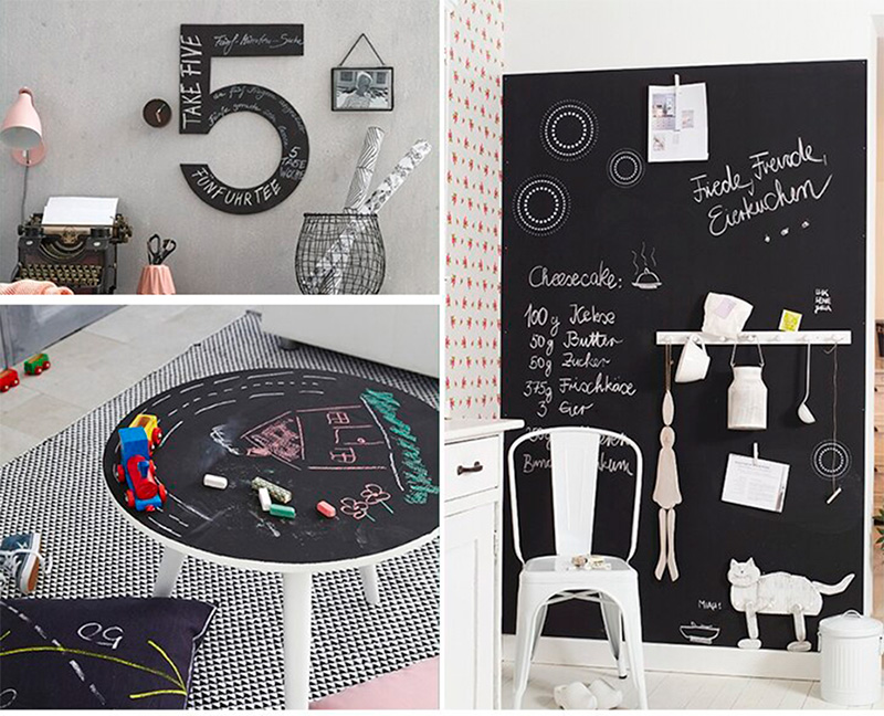 Они предлагают специальную самоклеящуюся пленку различных размеров, поверхность которой позволяет рисовать цветными мелками, а стереть изображение можно обычной намоченной губкой.