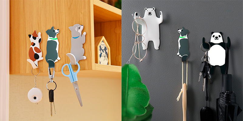 Крючки в виде забавных фигурок животных - для самых разнообразных назначений. У них на обратной стороне - непачкающийся липкий слой, который можно мыть для восстановления первоначальной липучести.