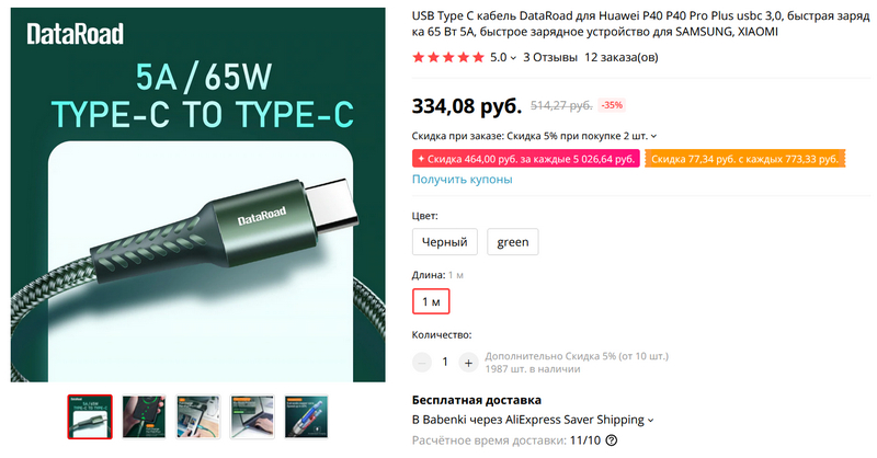 Это я искал для себя - кабель Type-C, поддерживающий зарядку мощностью до 65 ватт. У меня и адаптеры такие есть, и смартфоны с быстрой и сверхбыстрой зарядкой постоянно попадаются.