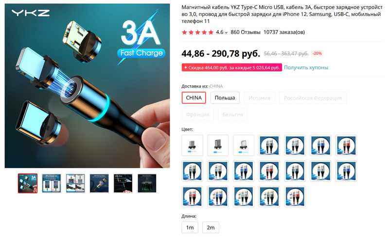 Кстати, о кабелях. Очередной вариант кабелей с магнитной головкой под все виды портов. Поддерживают быструю зарядку QC 3.0, разных цветов, есть метровые и двухметровые. Также можно отдельно купить нужные головки.
