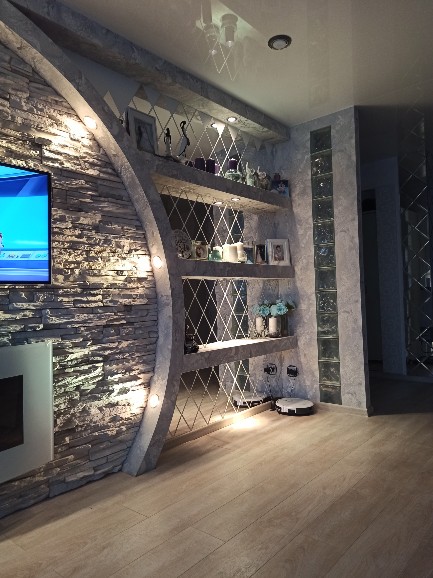 Пленка четырех цветовых оттенков и трех вариантов размеров. Есть инструкция по сборке, в отзывах пишут, что собирается довольно легко. И там же в отзывах есть несколько фото того, как покупатели использовали эту пленку. Вот, например, смотрите, как теперь интересно выглядит стенка, где полки.