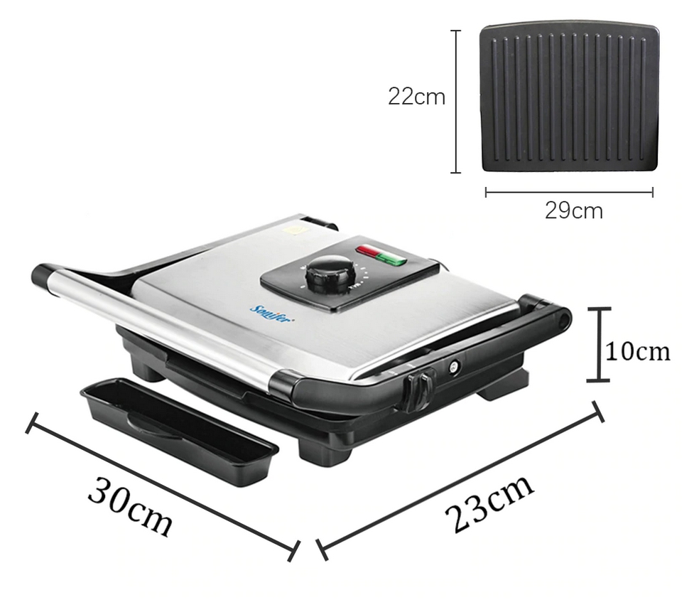 Мне друг посоветовал вот этот электрический гриль Sonifer на 2000Вт. Для квартиры в самый раз.Толстые пластины (не снимаются), сток жира в емкость. В комплекте силиконовая кисточка и лопатка. До рабочей температуры - за 2 минуты.