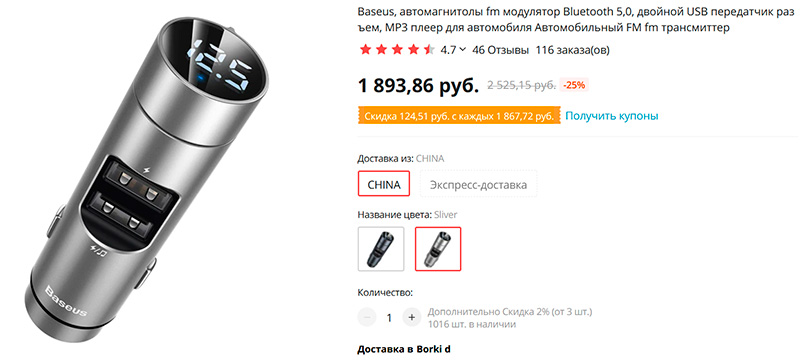 Универсальный адаптер для автомобиля от Baseus. Алюминиевый корпус, два порта для быстрой зарядки с током до 3,1А. Адаптер также может работать в качестве FM-передатчика для старых магнитол, умеет воспроизводить музыку с USB-флешек, причем тут также поддерживается и lossless-формат FLAC. В адаптере установлен дисплей, показывающий напряжение сети автомобиля.