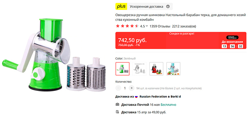 Глянул овощерезку, так она в лоб в вайлдберрис дешевле. А если чуть поискать и какой-нибудь скидкой воспользоваться, да или просто поискать, наверное и сильно дешевле можно найти.