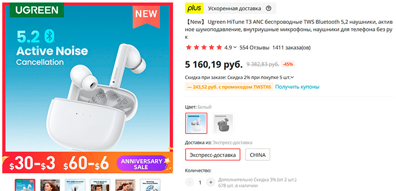 Недорогие наушники Ugreen HiTune T3 с закосом под Apple AirPods Pro. Активный шумодав, режим прозрачности, поддержка кодека AAC, Bluetooth 5.2, до 7 часов на одной зарядке - закажу себе, пожалуй, потестировать и сравнить с AirPods Pro.