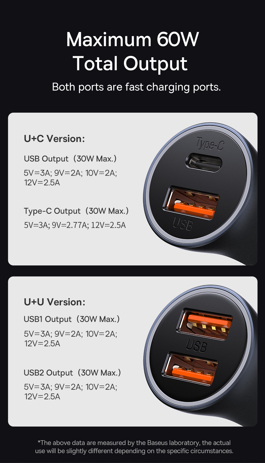 - Максимальная суммарная мощность 60W( 30W, 30W)