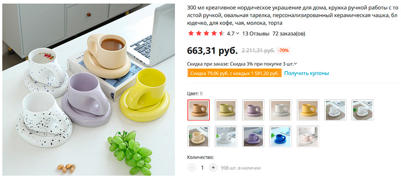 Креативные керамические чашки в скандинавском стиле с оригинальными блюдцами. Люблю такое, заказал себе бежевую.