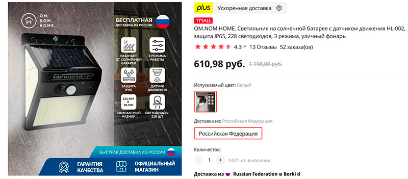 Быстрая и бесплатная доставка из России.