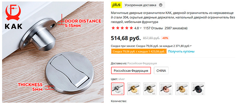 Качественные магнитные ограничители/держатели различных цветов. Круглая часть крепится лентой 3M, входящей в комплект. Я именно такие и использую, удобные.