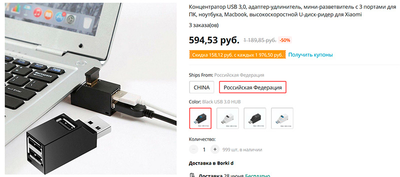 Компактный концентратор на три порта USB 3.0. Я дома с ноутбуками использую именно такие, только они у меня на два порта, а тут на три.