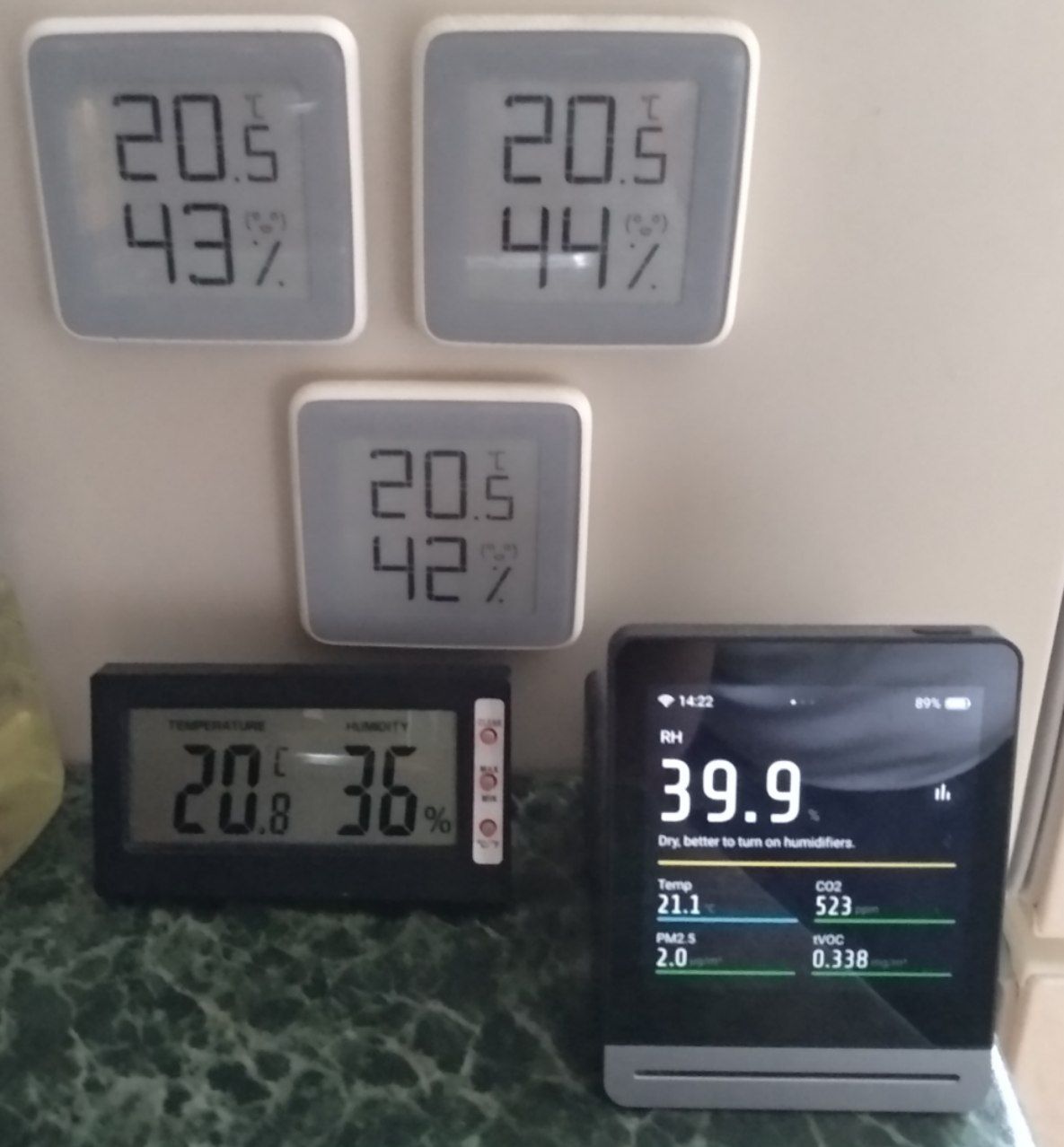 У меня вот такие 3 штуки, поставила ради эксперимента рядом на полку. Один показывает 17%, второй 23% а третий 37%...