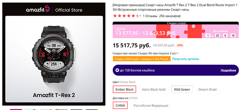 Новая модель защищённых часов Amazfit T-Rex 2 появилась в продаже. С купоном на скидку цена будет ниже 14 тысяч. Первую версию я изучал, понравилась.