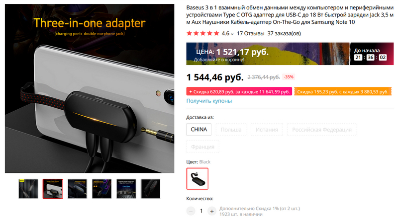 Любопытный адаптер "3 в 1" от Baseus: для любителей поиграть на смартфоне в наушниках.