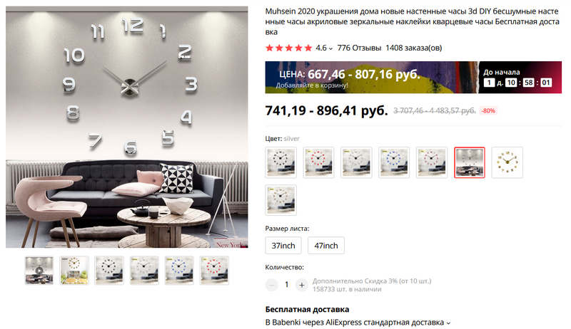 Вот такие часы на стену у меня друзья купили. Я увидел у них, зафанател и стал выяснять, где купить. Вот здесь. И есть разных цветов и двух разных размеров. Смотрятся реально шикарно.