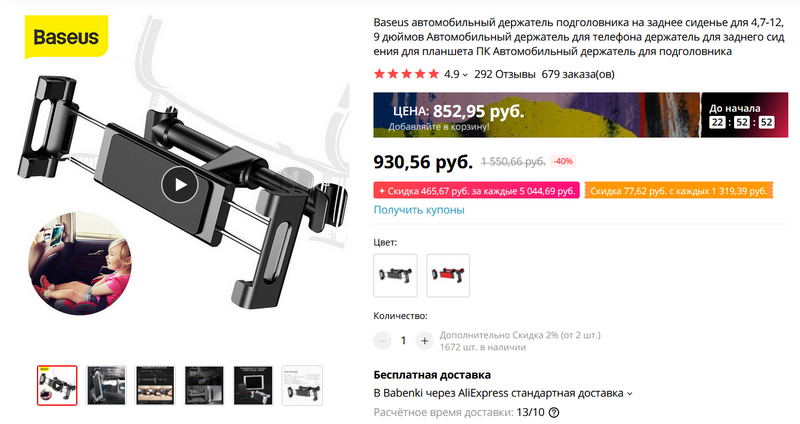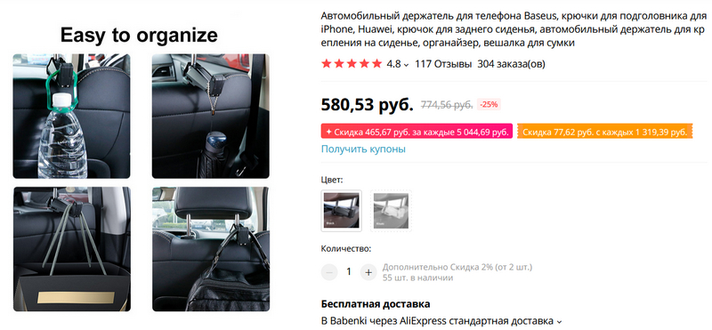 И еще из той же серии - два держателя от Baseus для подголовника. Для телефона, сумок, бутылок и так далее.