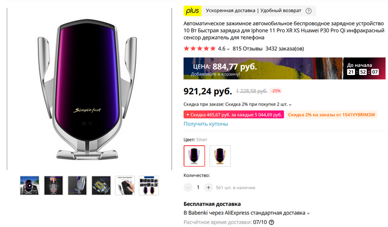 спасибо, хоть ни один код и не сработал в итоге. Купил как есть, только спецкупонами "поколдовал".