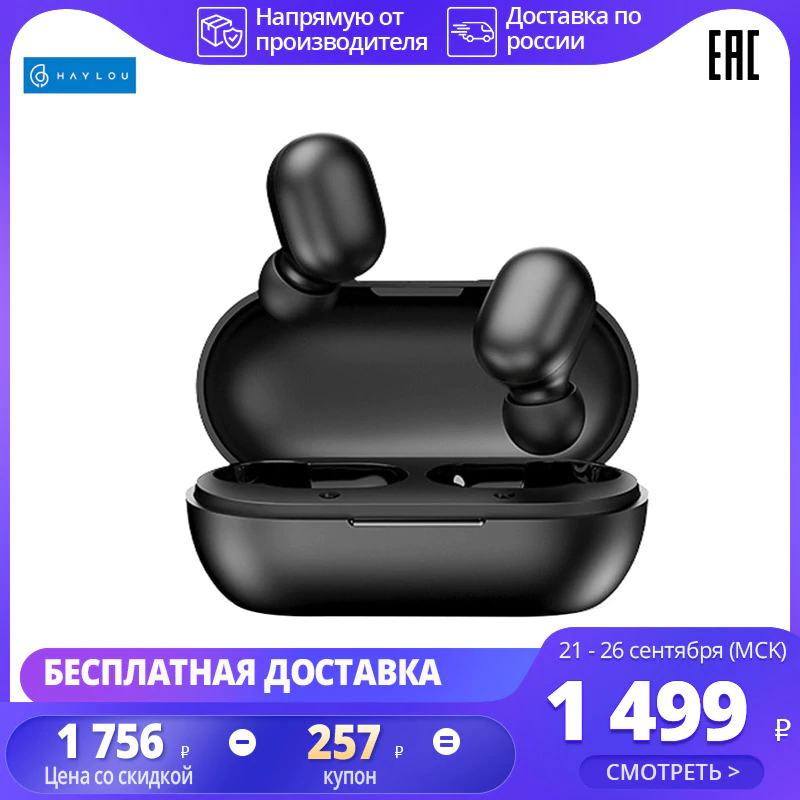 TWS наушники Haylou GT1 за 1499р. с учетом купона от продавца. Доставка быстрая, со складов в РФ.