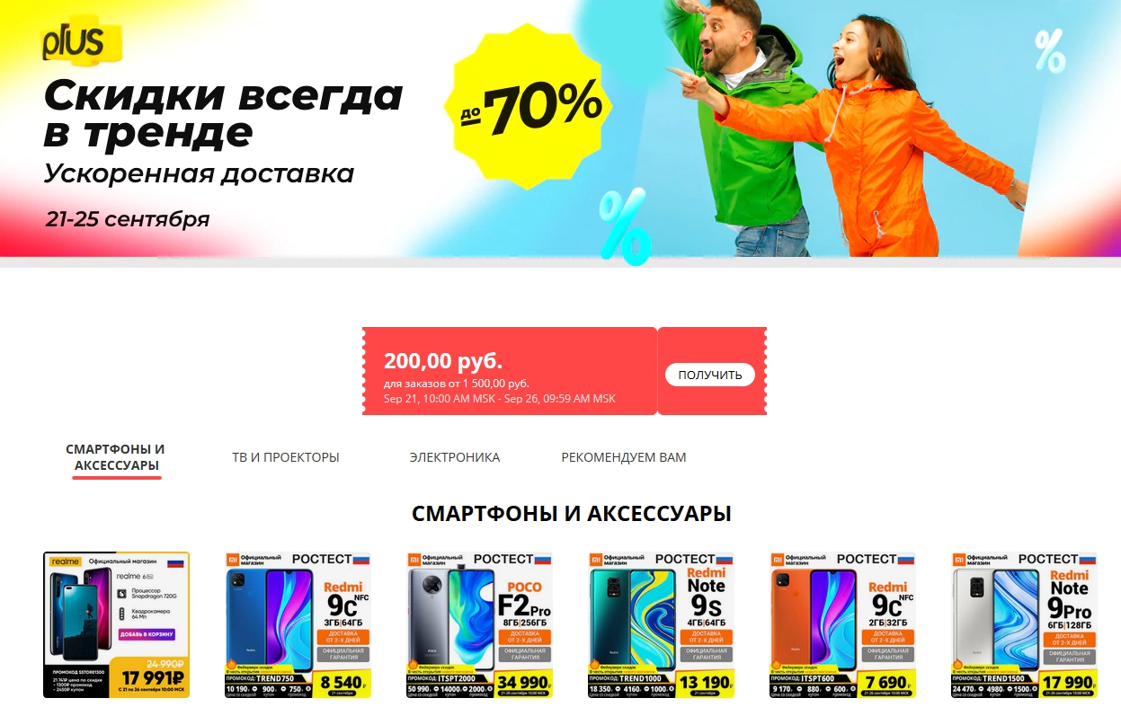 1. Доступен новый купон на 200р. для заказов от 1500р. Действителен до 26 сентября 2020.
