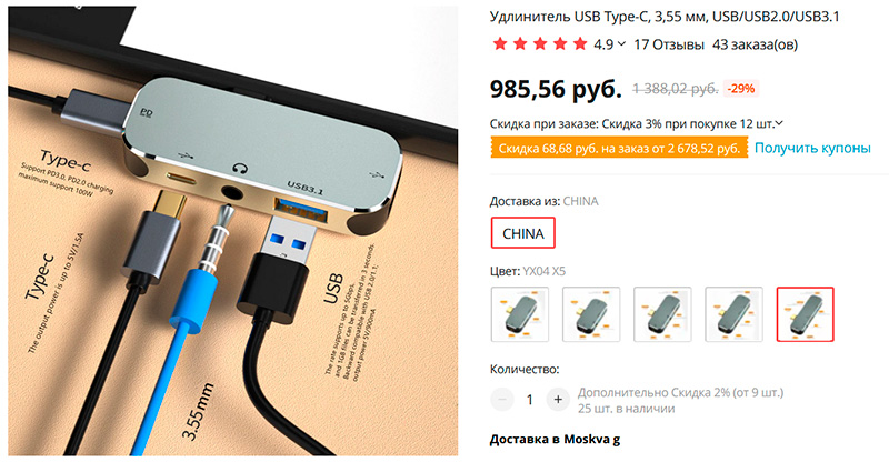 Несколько видов очень компактных удлинителей-расширителей для порта Type-C. Прежде всего для ноутбуков, но также могут использоваться со смартфонами/планшетами с OTG.