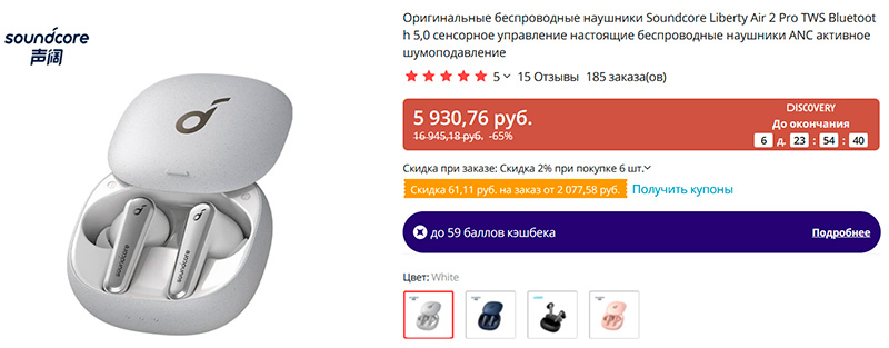 Недорогие внутриканальные TWS-наушники в стиле AirPods Pro - Anker Soundcore Liberty Air 2 Pro. Активное шумоподавление на базе шести микрофонов, есть режим "прозрачности", поддерживают кодек AAC, управление сенсорное, также управляются через приложение, где есть дополнительные возможности подстройки. Автономность - 6 часов, с подзарядкой от кейса - до 26 часов. Я делал обзор Soundcore Liberty 3 Pro - они классные, но в три раза дороже.