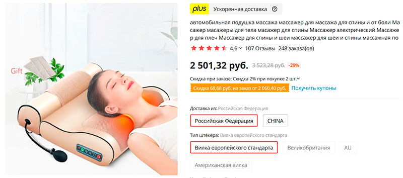 Многофункциональная массажная подушка с различными режимами работы: для шеи, воротниковой зоны, спины и поясничной зоны. 8 массажных элементов, есть варианты с подогревом. Есть доставка с российского склада, также есть вариант с адаптером для прикуривателя, чтобы использовать в машине для массажа поясничной зоны.
