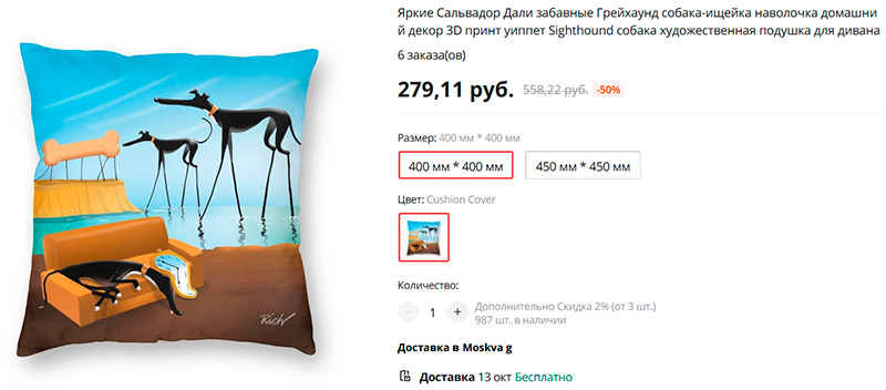 Подушка двух размеров с забавным принтом по мотивам картин Сальвадора Дали.