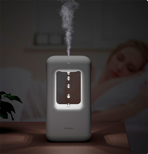 Увлажнитель воздуха Xiaomi с оригинальным дизайном (посмотрите видео, смотрится очень интересно). Есть встроенный светильник, так что увлажнитель одновременно может служить ночником.