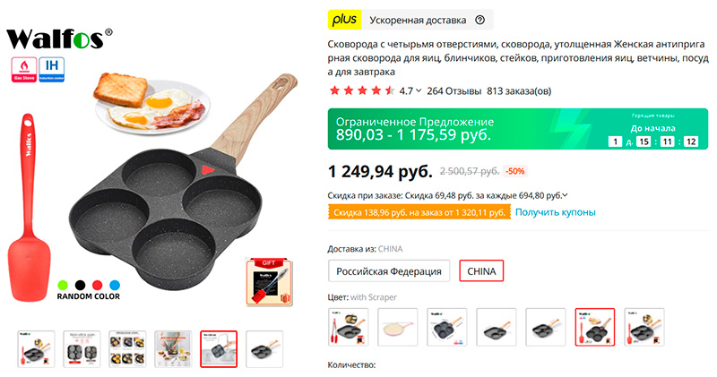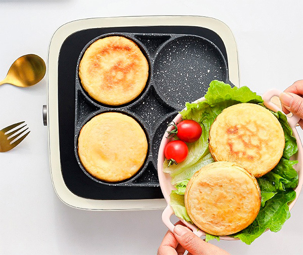 Сковородка с 4 круглыми зонами для готовки - для быстрого приготовления завтрака для 1-4 человек. Четыре яичницы-глазуньи для 4 человек, две яичницы и две порции бекона или жареных помидор - для 2 человек, яичница, бекон, помидоры и лук - для 1 человека. Также здесь одновременно можно испечь 4 блинчика, 4 драника и так далее. Ну и там также есть вариант с двумя круглыми зонами и одной продолговатой. И есть доставка с российского склада.