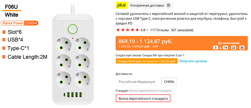 Внимание, вилка "китайская" (что для меня в общем плюс, т.к. у нас в AU розетки совместимые, а жителям RU стоит поменять вилку).