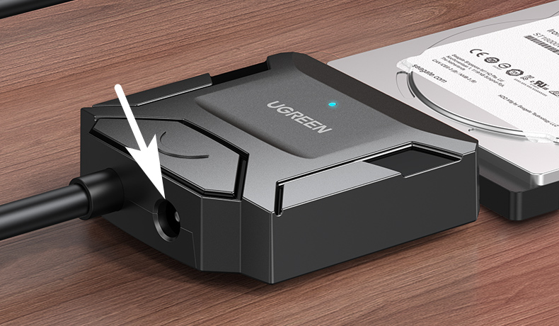 Подобного рода переходники бывают с разъемом для подключение адаптера на 12В. Если здесь пишут, что переходник подходит только для 2.5-дюймовых, то видимо этот переходник без разъема для 12В.