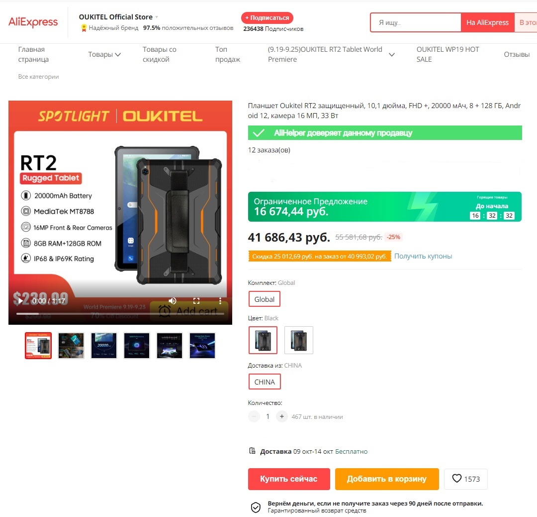 В фирменном магазин OUKITEL на Алиэкспресс с 19.09.2022 г. до конца недели распродажа: