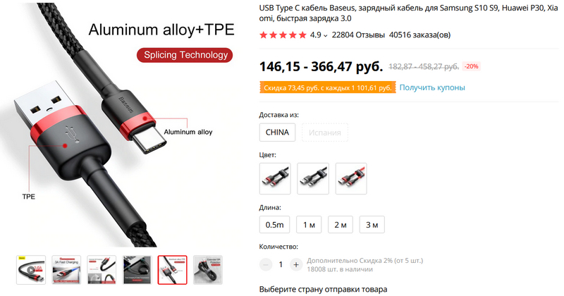 Качественные кабели Type-C - всегда актуальны. А тут не только кабели разных размеров (от 0,5 метра аж до 3 метров) от известного производителя Baseus, но и еще хорошо защищенные и укрепленные в местах, где кабели обычно ломаются.