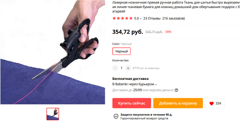 Смотрите, какая любопытная штука - ножницы с лазерным указателем направления резки. Если приходится резать большие листы бумаги или длинные куски ткани, то это более чем удобно! Кстати, в отзывах пишут, что ножницы сами по себе хорошего качества и очень острые.