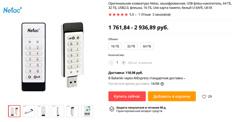 Полезная штука - защищенная флешка с цифровым кодом для доступа. Есть на 16, 32 и 64 ГБ. За доставку возьмут 119 рублей, но я уверен, что это совершенно несмертельно.