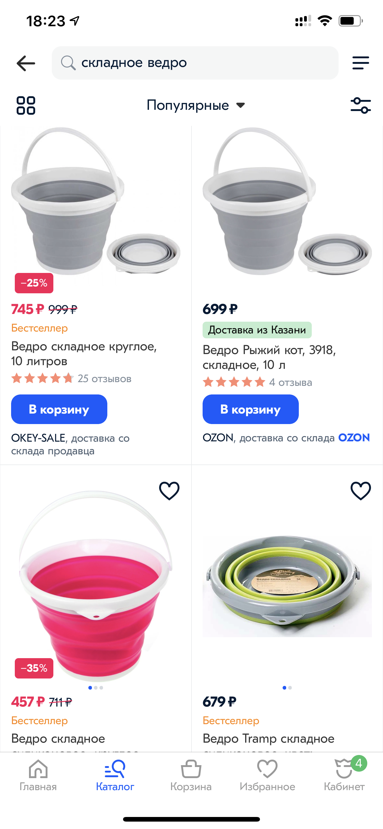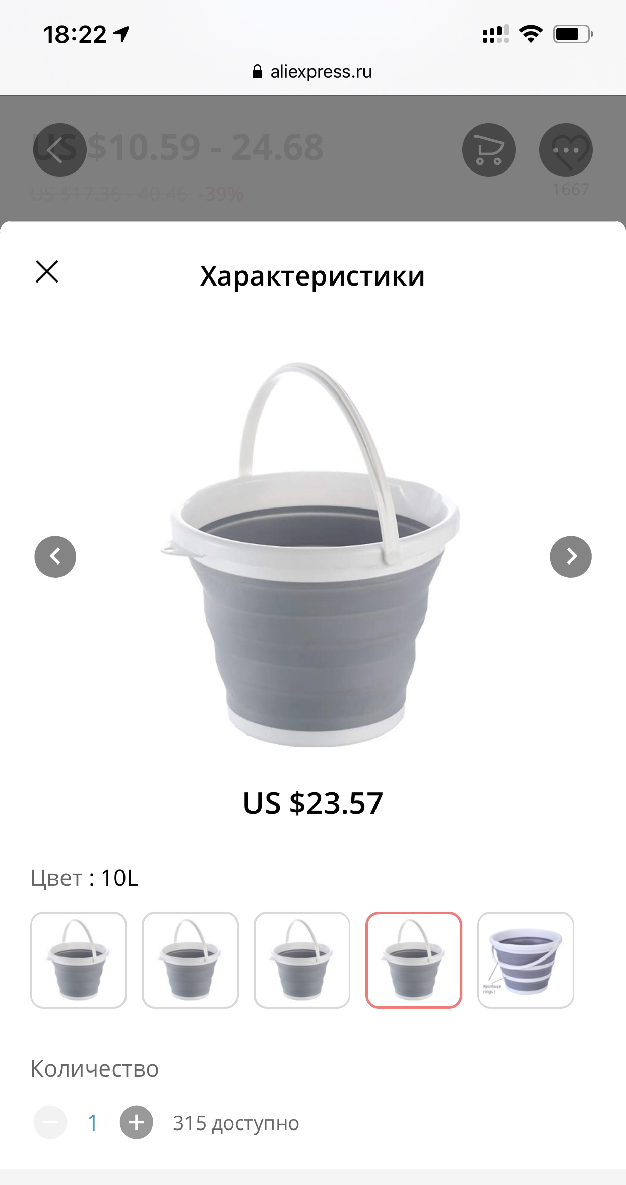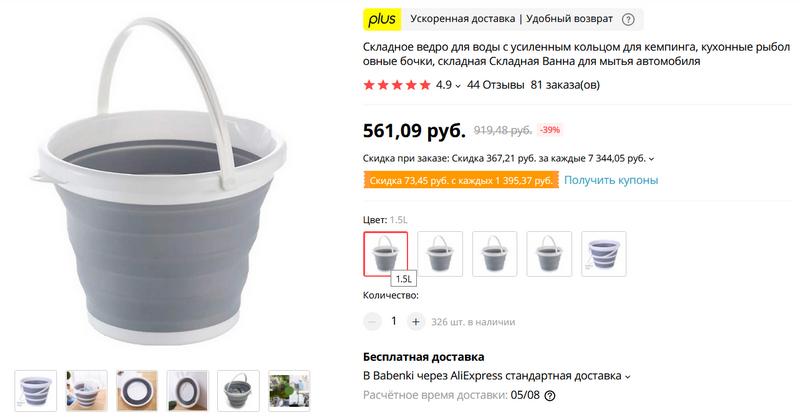 В прошлый раз хорошо пошли складные тазики - ну так вот вам складные ведра. Удобные, легкие, компактные. 1,5 литра, 3, 5 и 10 литров. Для дома, для рыбалки, для барбекю и так далее.