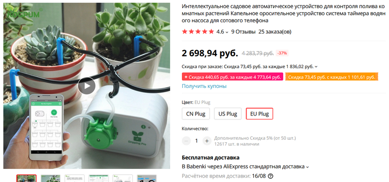 Очень актуальное в условиях лета, когда люди уезжают на дачи - система автоматического полива растений. Настраивается и управляется со смартфона.