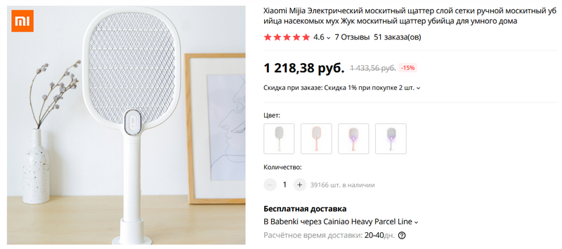 Тоже актуальное - электромоскитница от Xiaomi. Быстро и эффективно уничтожает мух, комаров и прочую летающую заразу. Заряжается от USB-порта.