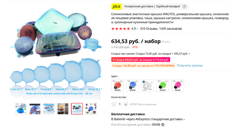 Бытовуха. Набор силиконовых эластичных крышек - для любой посуды и контейнеров, как круглых, так и прямоугольных. Растягиваются до 40 процентов.