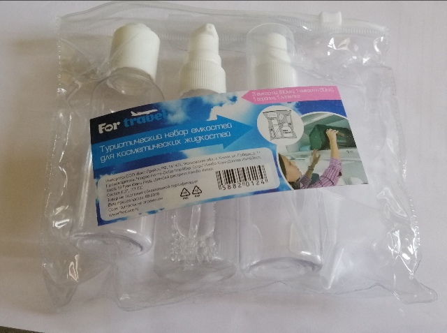 А там набор 50-70 мл, винтовые крышки на всё горлышко, лопатка и воронка для заполнения. Два флакона с нажимным дозатором с трубкой до дна (== полное "вытряхивание"). Два с откидным дозатором в колпачке. Четыре ёмкости. Всё в зиплоке прозрачном. За доллар, у дома и сразу, а не через месяц-два.