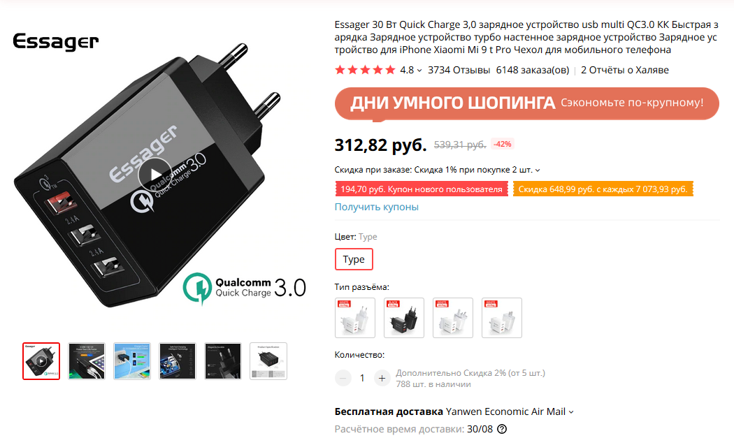 Зарядное устройство Essager 30 Вт Quick Charge 3,0 зарядное устройство usb multi QC3.0 КК для телефонов на 3 порта. Незаменимая вещь в дороге, да и для быстрой подзарядки в домашних условиях очень удобна.
