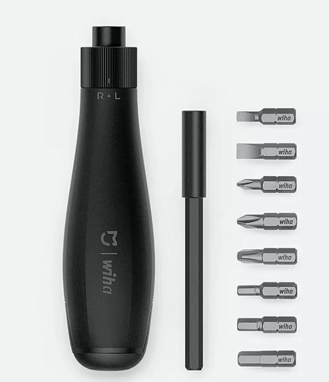 Вот такая отвертка от Xiaomi, для дома. Совместно с немецкой компанией wiha. 8 бит расположены прямо в корпусе самой отвертки. Удобная, мощная. Мне очень понравилась.