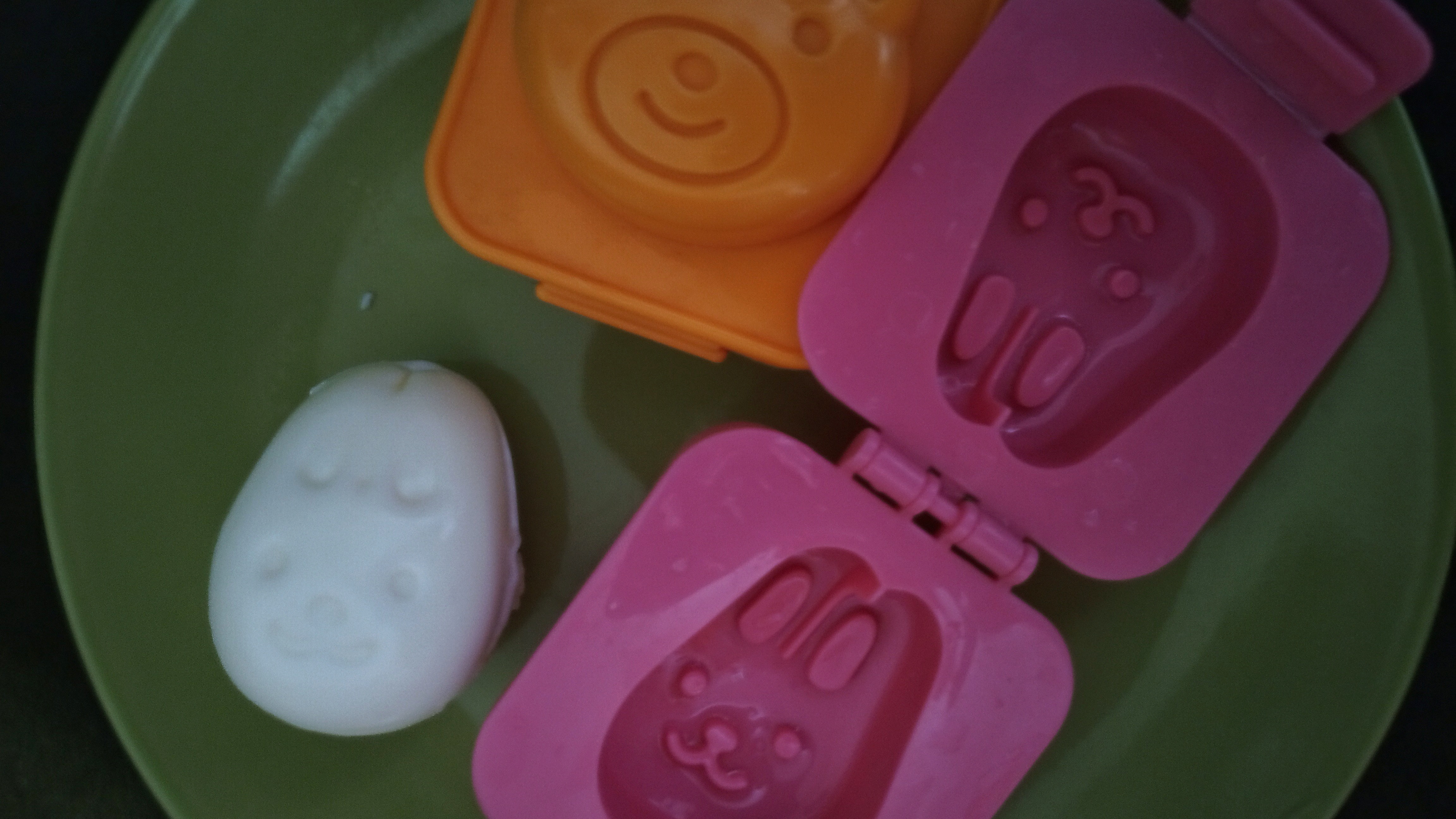 Начну с того, что использовала сегодня утром. Вот такие формочки для варёных яиц. Сразу скажу, что брала их давно, лет 6 назад, если не больше, поэтому и продавец вовсе не тот, но у меня именно такие - зайчик и медвежонок, розовый и оранжевый. Несмотря на свой почтенный для пластиковых кухонных штук возраст функциклируют безотказно. Смысл в том, что ещё горячее вареное и очищенное яйцо кладешь в такую формочку и через пару минут оно, остывая, приобретает форму вот такого звереныша. Медведь для яиц покрупнее, заяц - поменьше. Дети очень любят есть зверят. В общем, штука не особо нужная, но не бесполезная, а ещё недорогая и долговечная, к тому же приносящая радость.